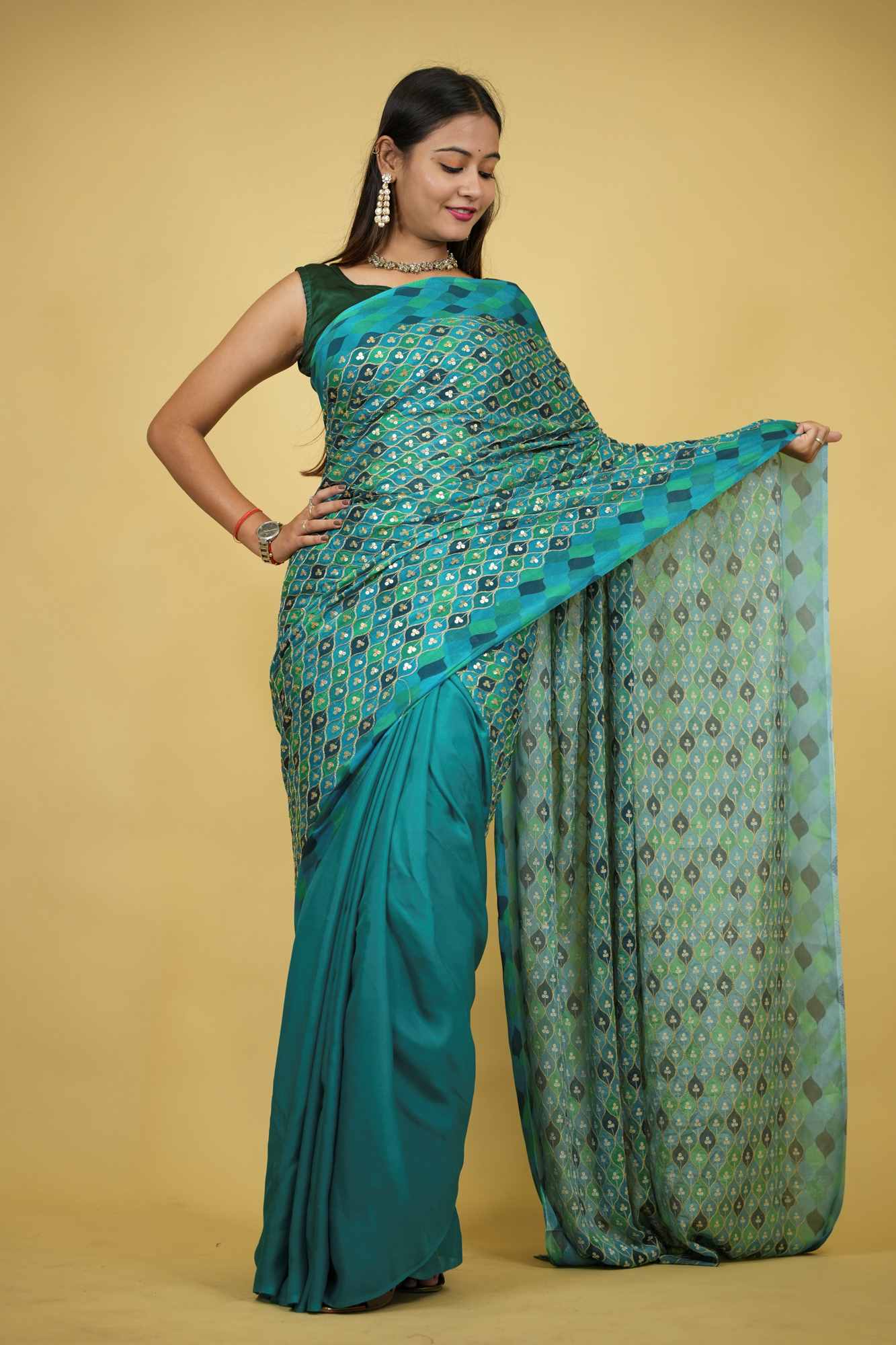 Soft Georgette Silk with Mina Jaal Weave and Zari Border Ready To Wear zip & go saree