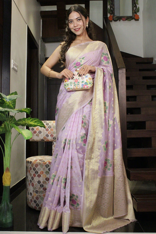 Purple Vegan Silk Tissue with Embroidery Border Ready to Wear Saree