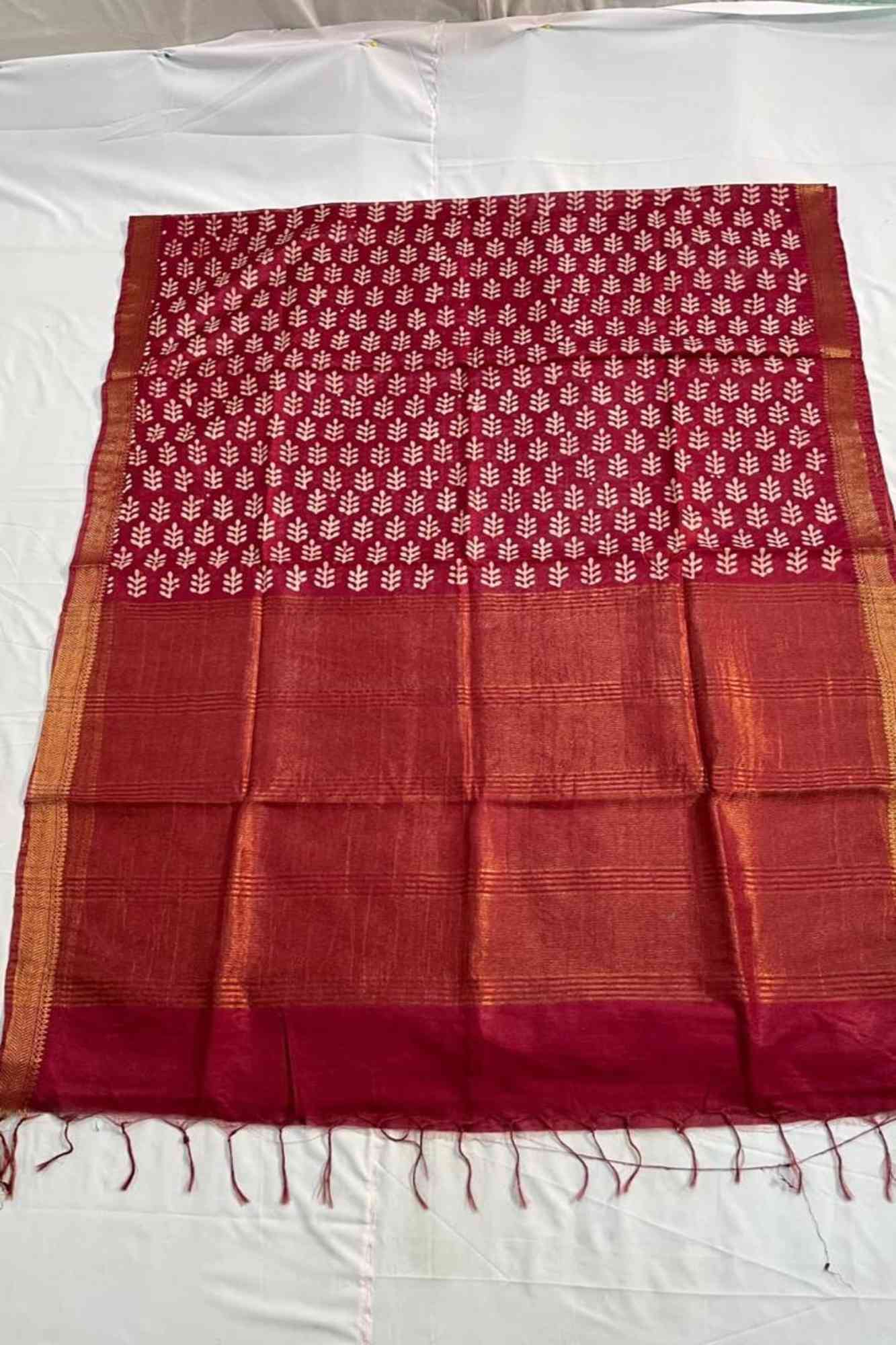 Maroon Kota Doria Tissue Cotton Saree with Sona Rupa Zari Border ready to wear saree