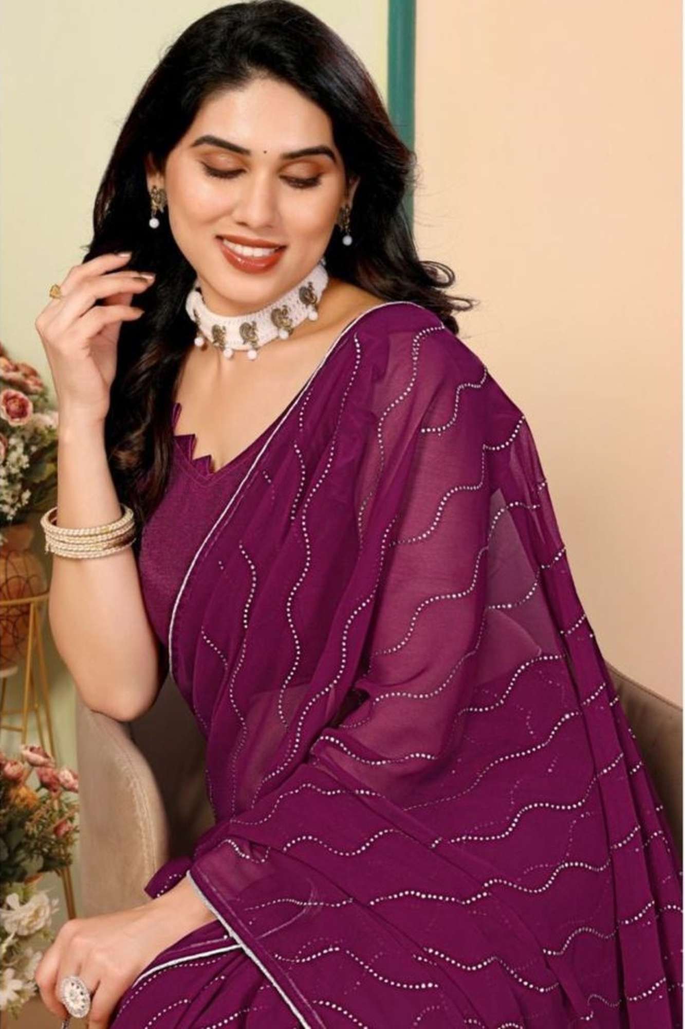 Purple Vegan Silk Tissue with Embroidery Border Ready to Wear Saree