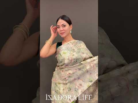 Premium Chiffon Silk With intricate Floral Motif Stone Embellished Detail Border Pre Drape Saree