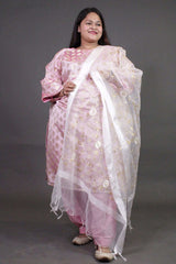 Baby Pink Brocade Ready to wear Salwar-Kameez with White Organza Embroidered Dupatta