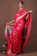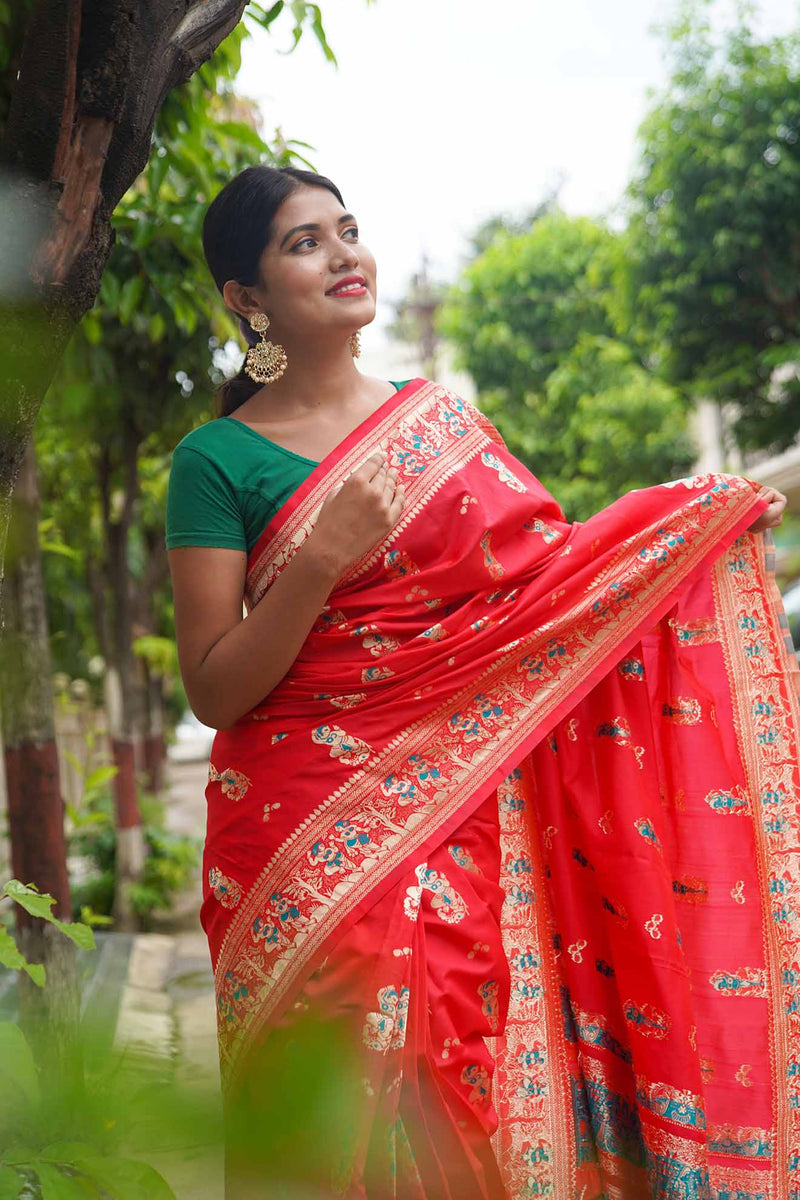 Banarasi meets Baluchari festive wrap in 1 minute saree