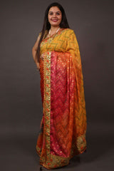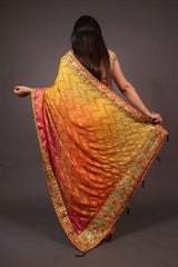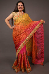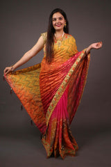 Beautiful gota patti bandhani wrap in 1 minute saree with tassels in pallu