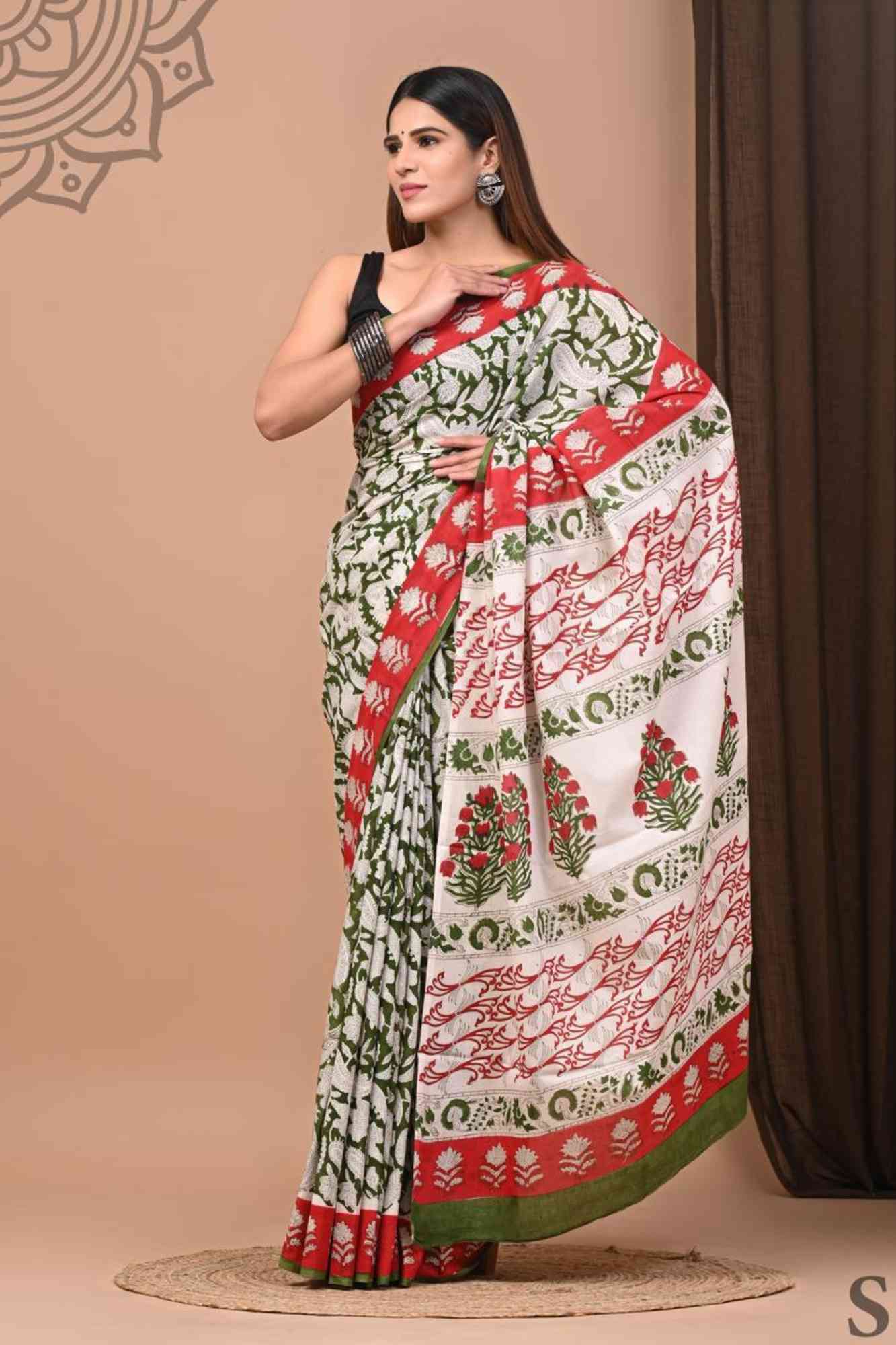 Beautiful Mulmul Cotton with Traditional Ikat Hand Block Print Wrap in 1 Minute Saree