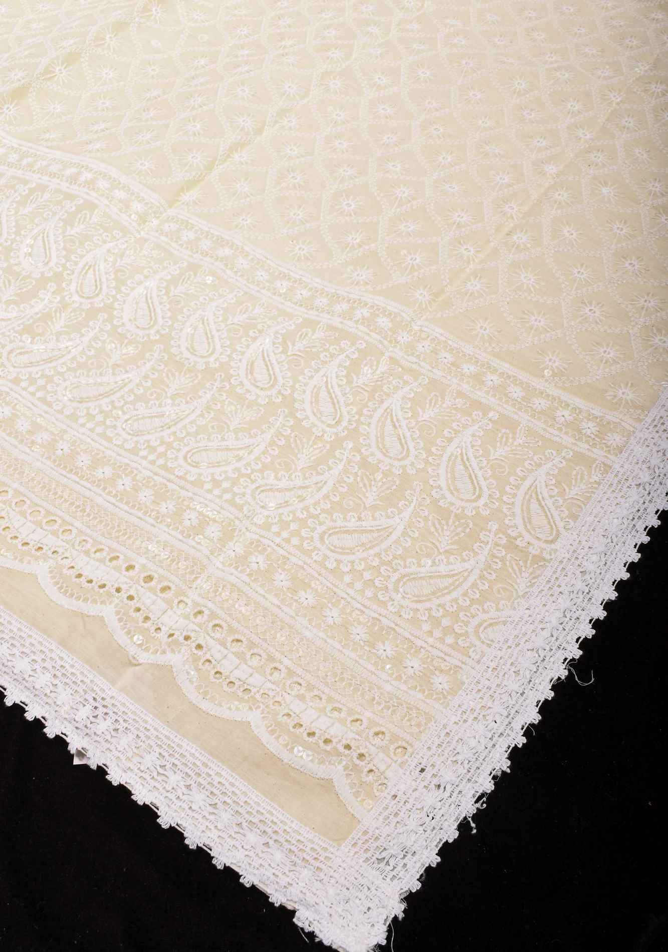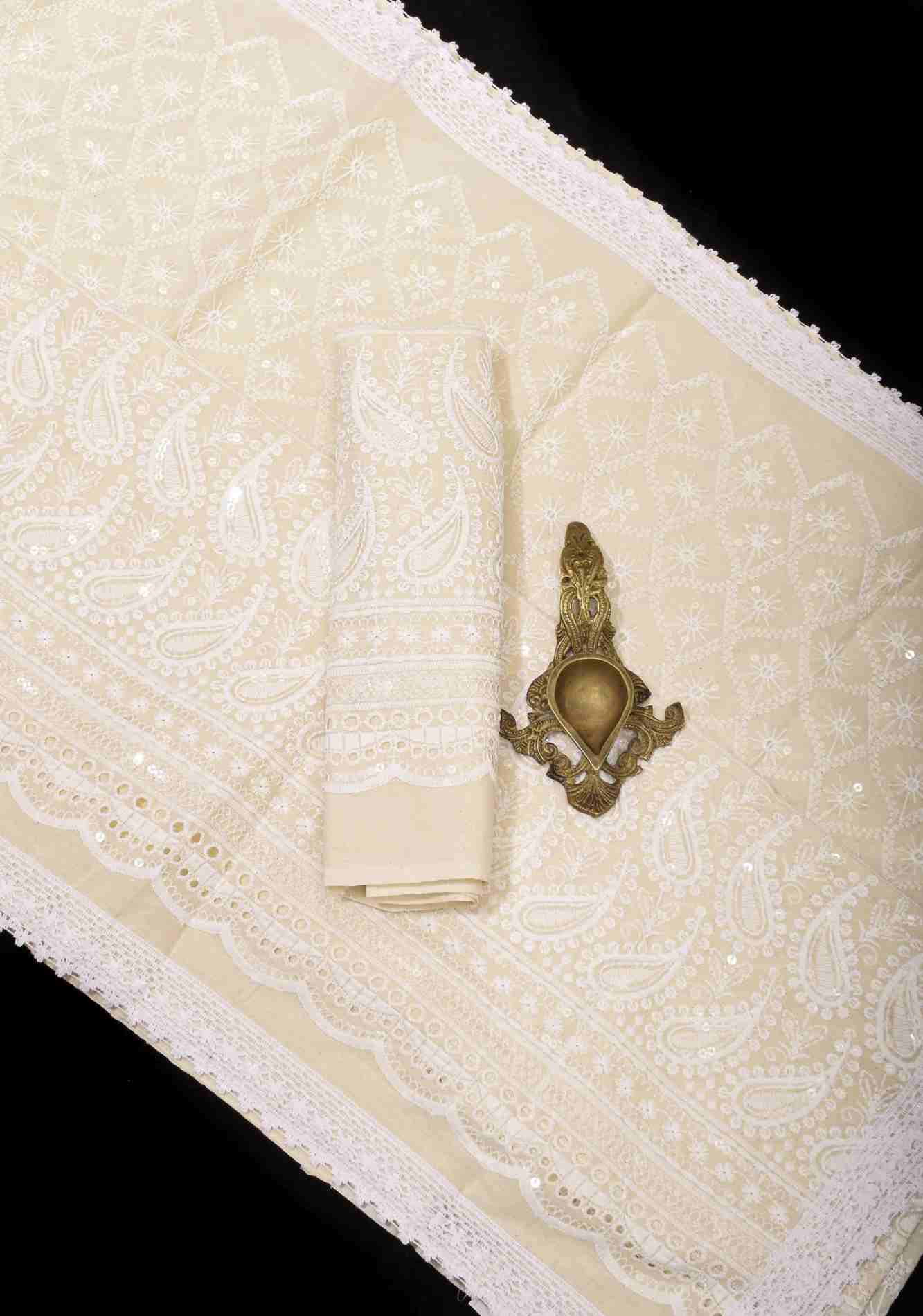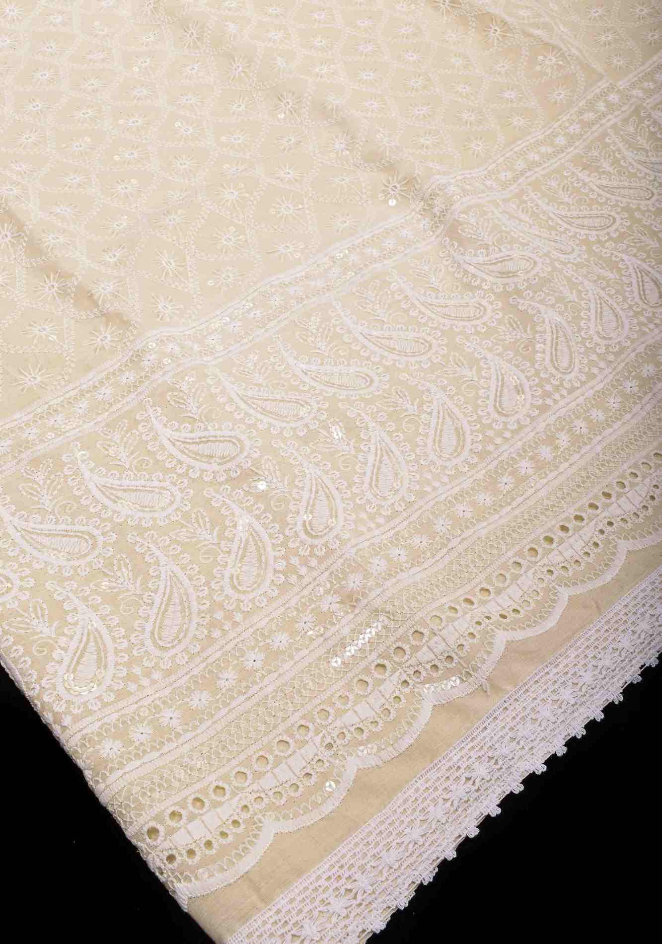 Beige Cotton Saree with Embroidery and lace Border Wrap in 1 minute saree