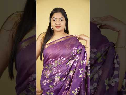 Linen Silk with Floral Embroidery & Golden Mangalgiri Zari Border Ready To Wear Saree