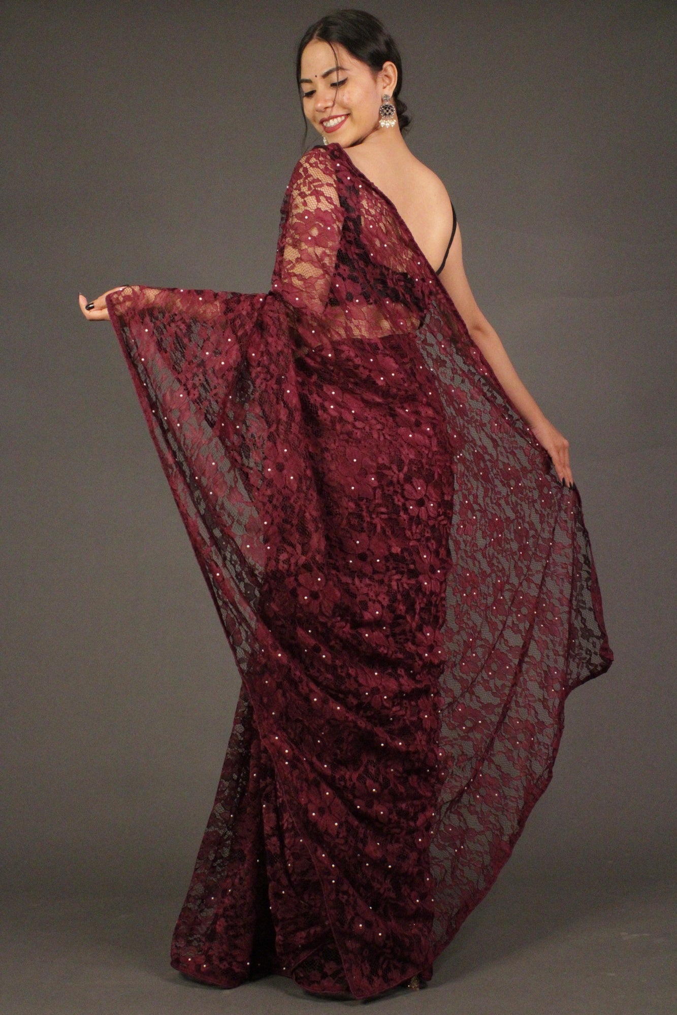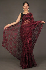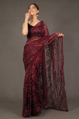 Burgundy Embellished Lace beaded Wrap in 1 mintue saree
