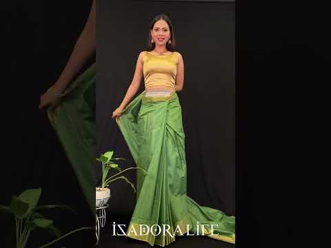 This exclusive handwoven premium semi-Bapta silk ready to wear saree is a masterpiece that embodies elegance, sophistication, and timeless beauty. The rich green color evokes a sense of serenity and regality, while the intricate handwoven patterns elevate the fabric to an extraordinary level of craftsmanship. Made from the finest semi-Bapta silk, the saree has a smooth, soft texture that flows effortlessly with every movement, creating a graceful silhouette.