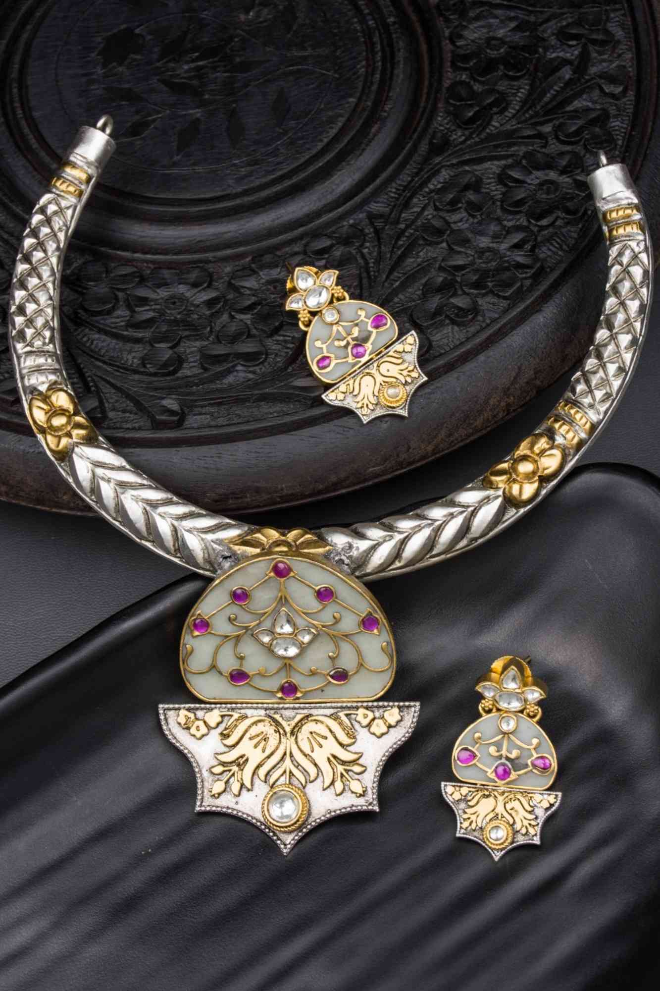 Dual Tone Hasli with Meenakari Enamel work pendant