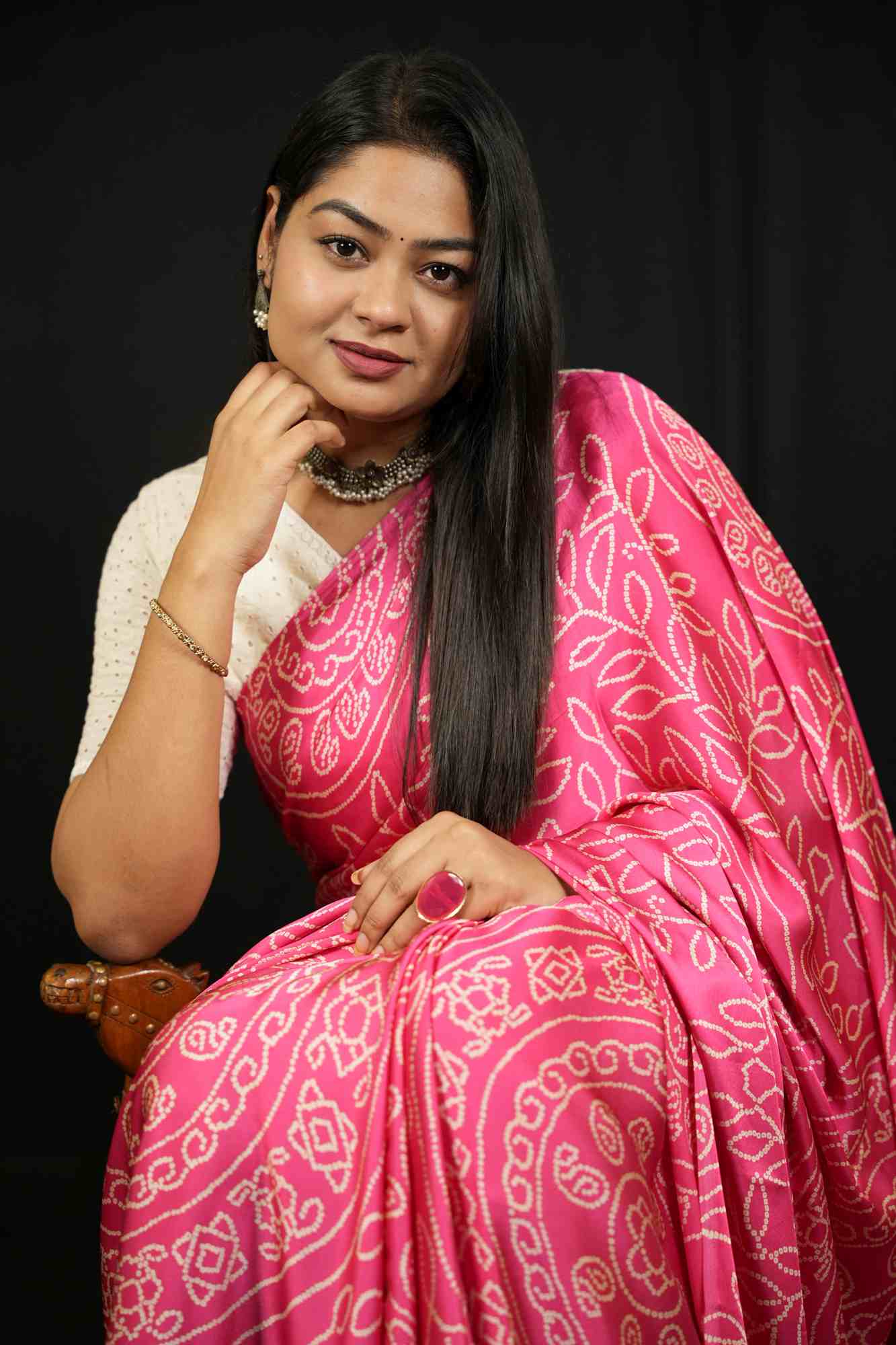 Fuchsia Charm Gajji with Ajrakh Accents Ready To Wear Saree