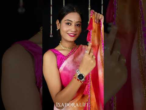 This Ready To Wear saree showcases a beautiful tie-dye or shaded effect in vibrant shades of pink, orange, and white, offering a soft gradient appearance. The design is enhanced with a decorative border featuring gold trim, white scalloped edges, and a striking hot pink accent, adding a festive and elegant touch. Tassels along the edge lend additional charm, while a matching hot pink blouse piece completes the ensemble. Ideal for festive events and casual celebrations, this saree combines playful color transitions with traditional detailing for a stylish and graceful look.