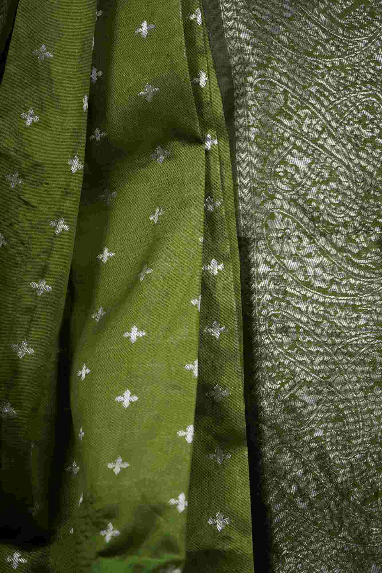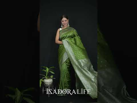 This Gorgeous Green Banarasi Soft Semi Tissue Silk is the allover zari weaving adorns the fabric, with intricate threads of gold or silver meticulously woven into the soft tissue silk. The gleaming zari creates a breathtaking contrast against the purple backdrop, catching the light with every movement and adding a luminous glow that is nothing short of mesmerizing.