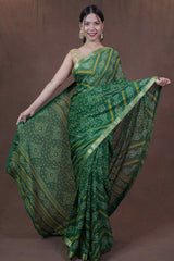 Green Bandhani Chiffon Wrap in 1 minute saree