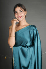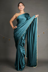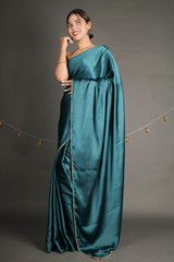 Turquoise Blue Satin Wrap in 1 Minute Saree