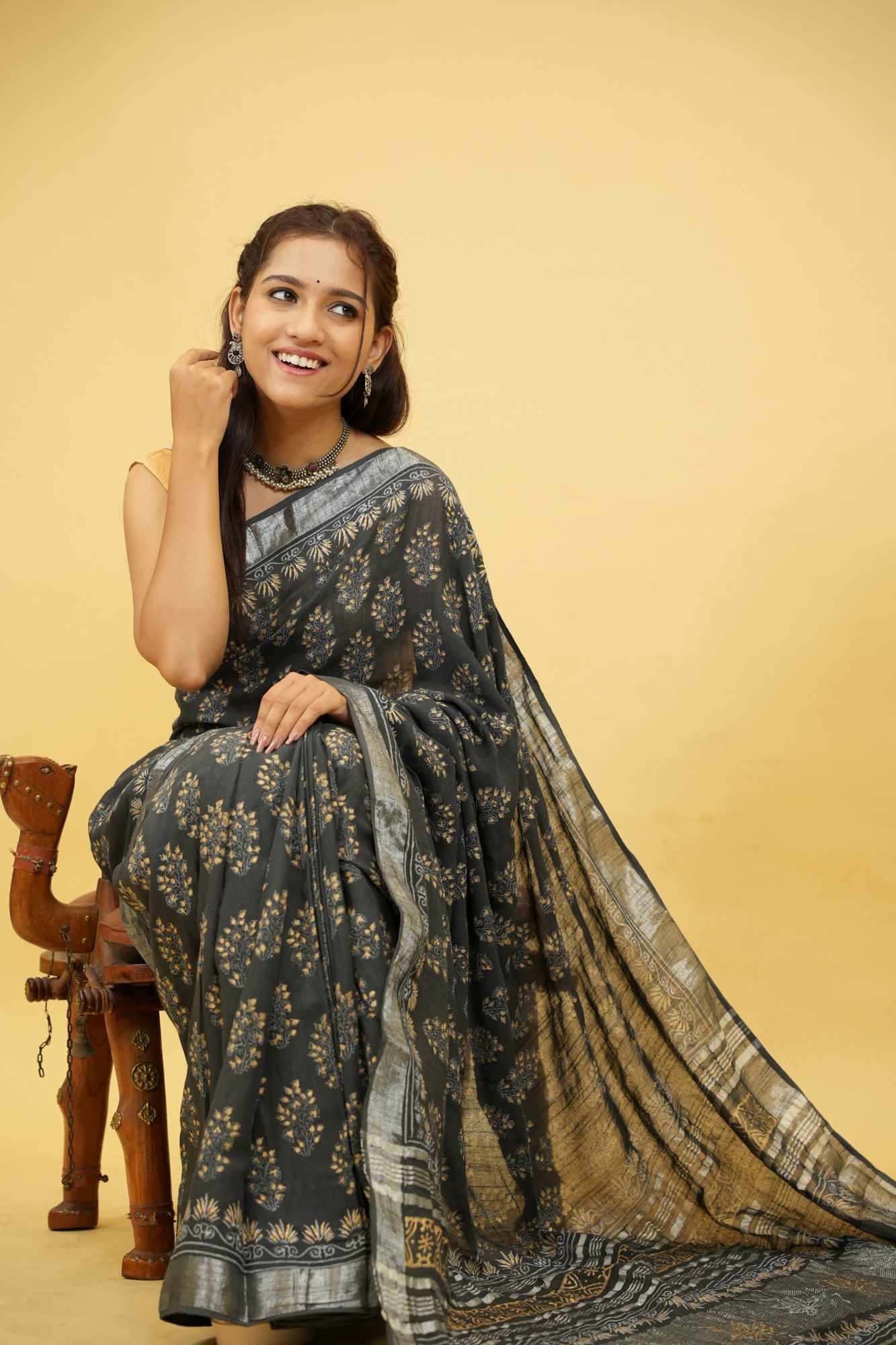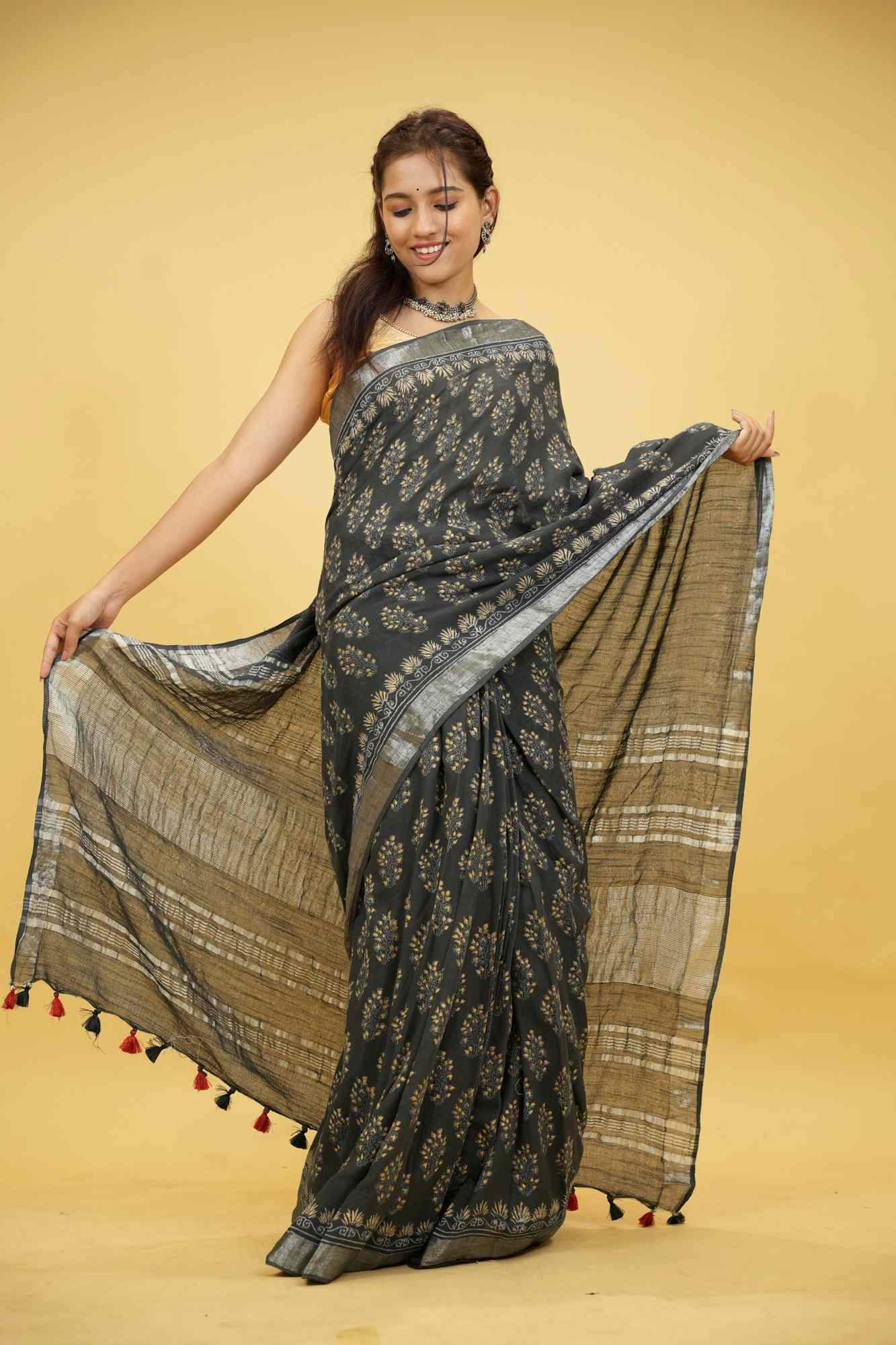 Jaipuri Sanganeri Linen Cotton Ready to Wear Saree