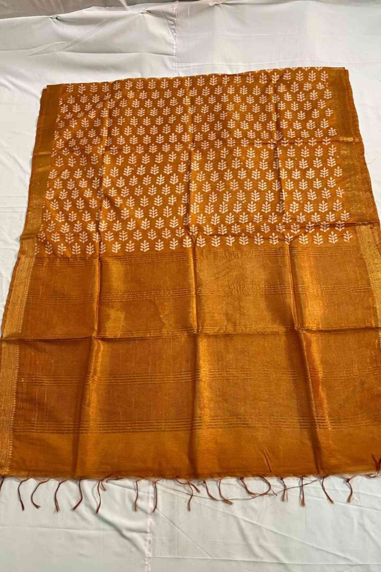 Kota Silk in Golden with Zari Border & Leaf Motifs Ready To Wear Saree