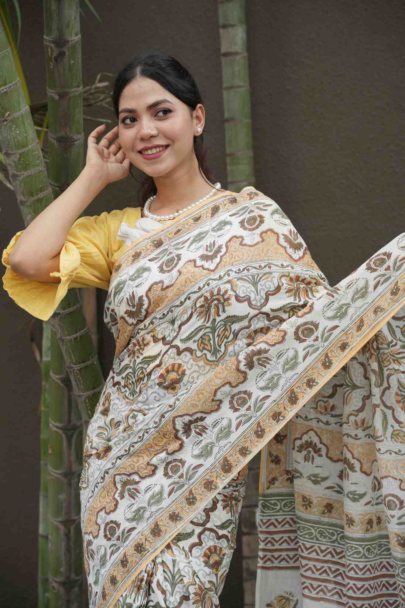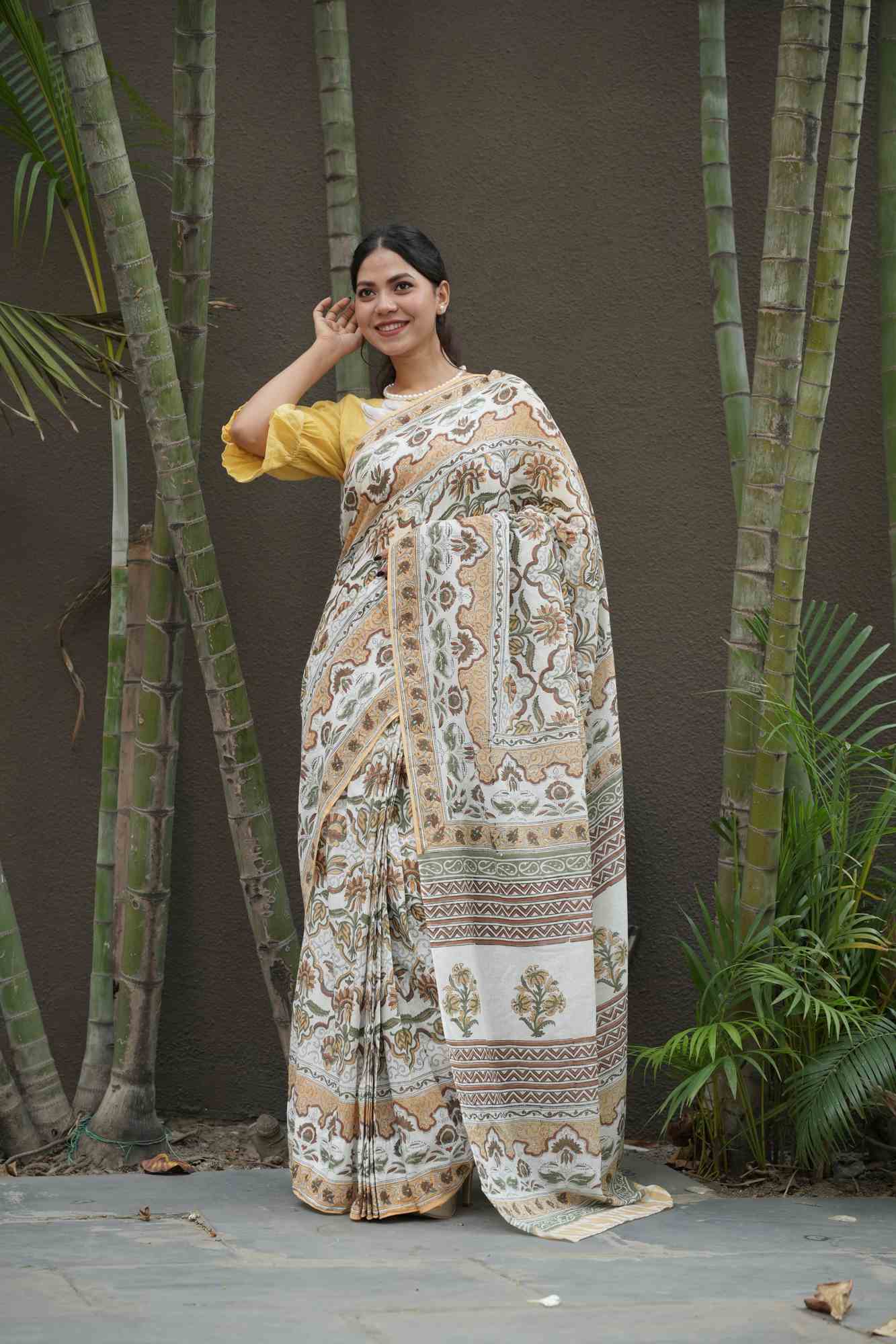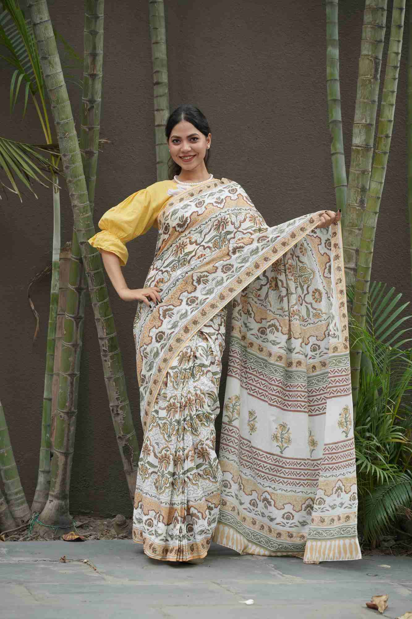 Light weight easy to wear saree floral jaipuri sanganeri mulmul ready to wear saree