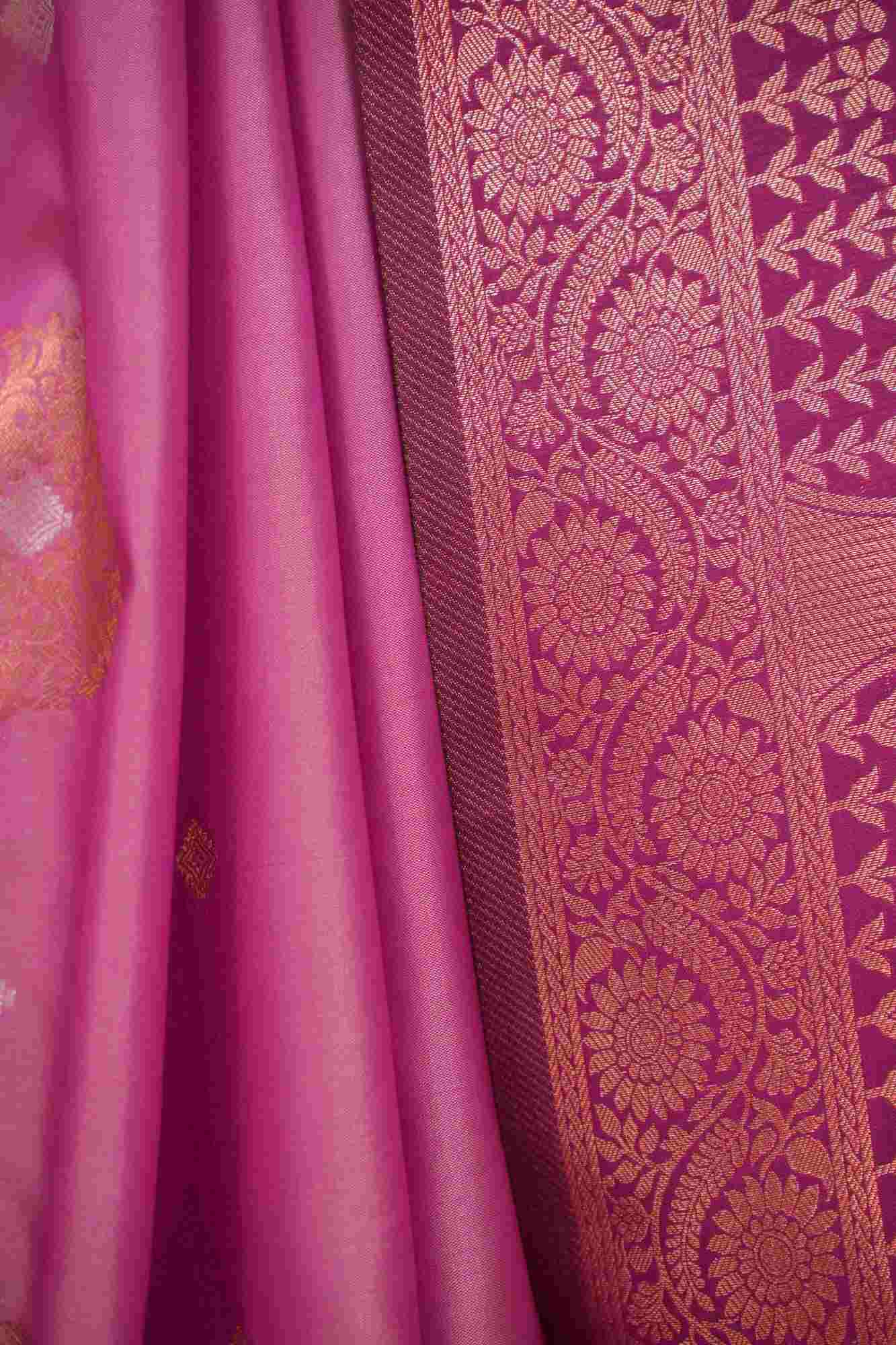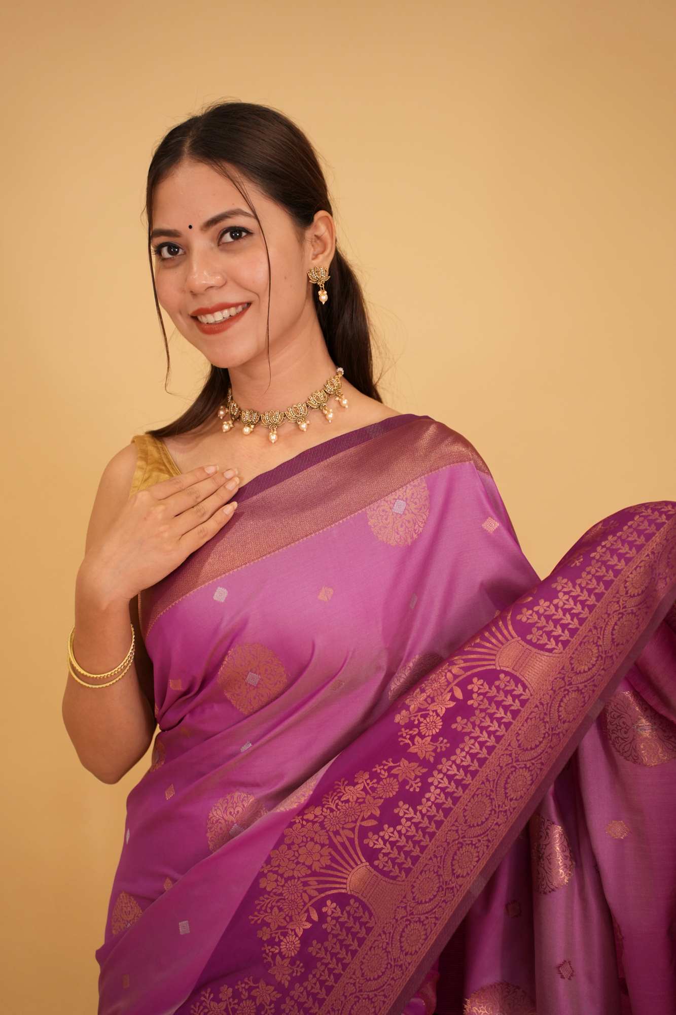 Lilac Semi Silk Saree with Alfi Zari Buttas and Copper Zari Border Ready To Wear Saree