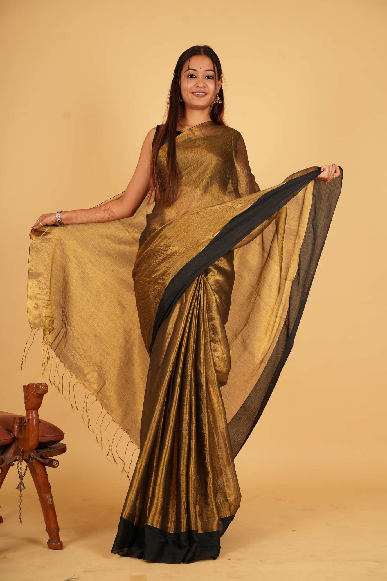 Metallic Tissue With Elegant Black Border Ready To Wear Saree
