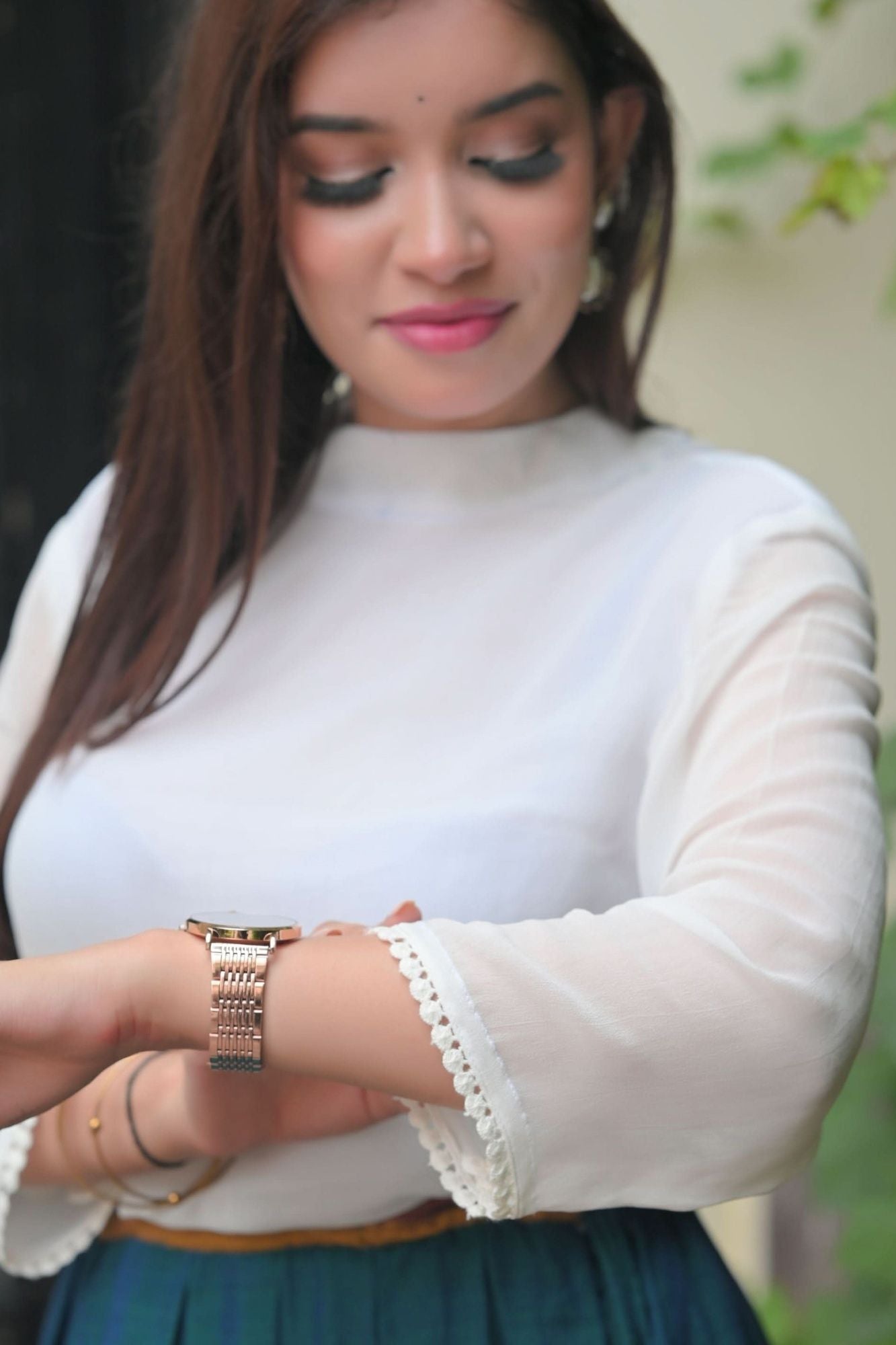 Moor Hues - Peacock Blue Green Pleated skirt with White Georgette Top | Made To Order