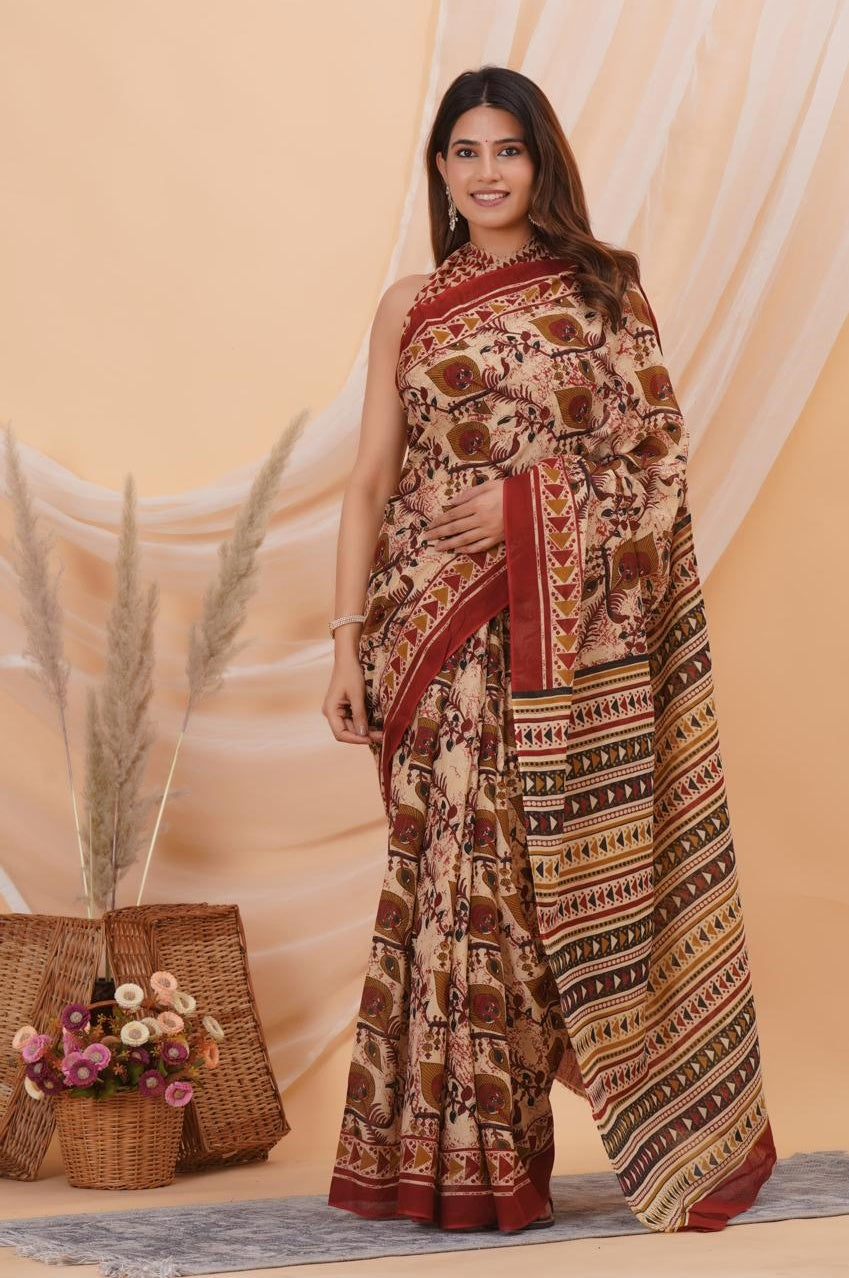 Mulmul Cotton Traditional Block Print Ready to wear Saree
