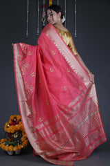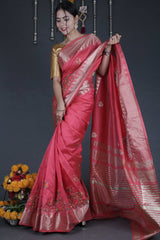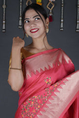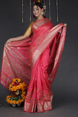 Pink Blush cotton silk with ornate embroidered border wrap in 1 minute saree
