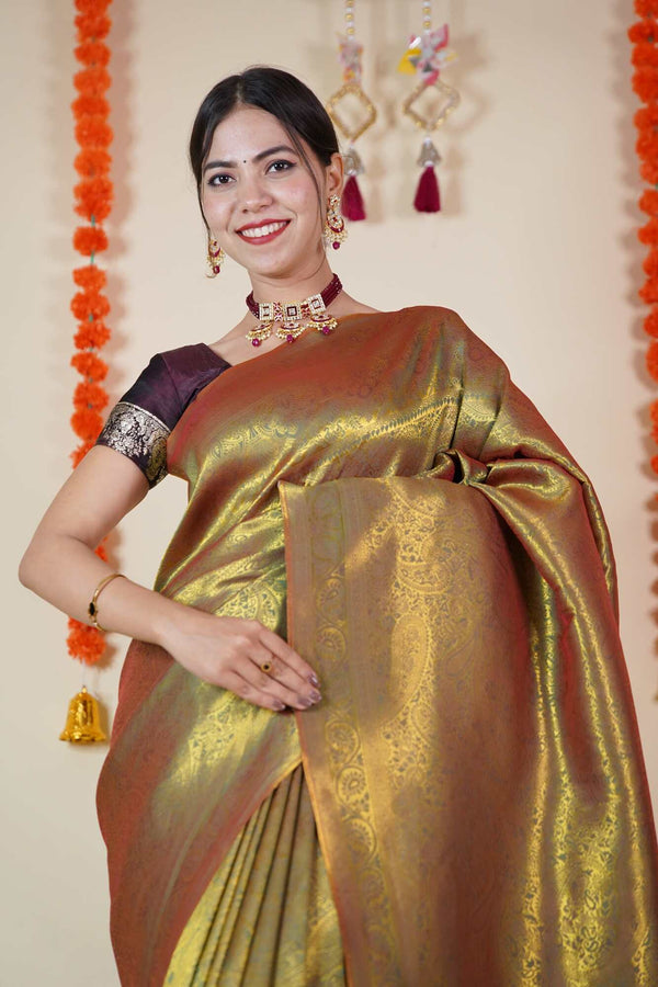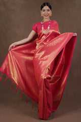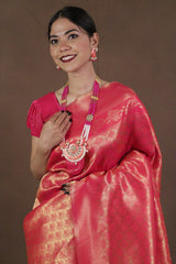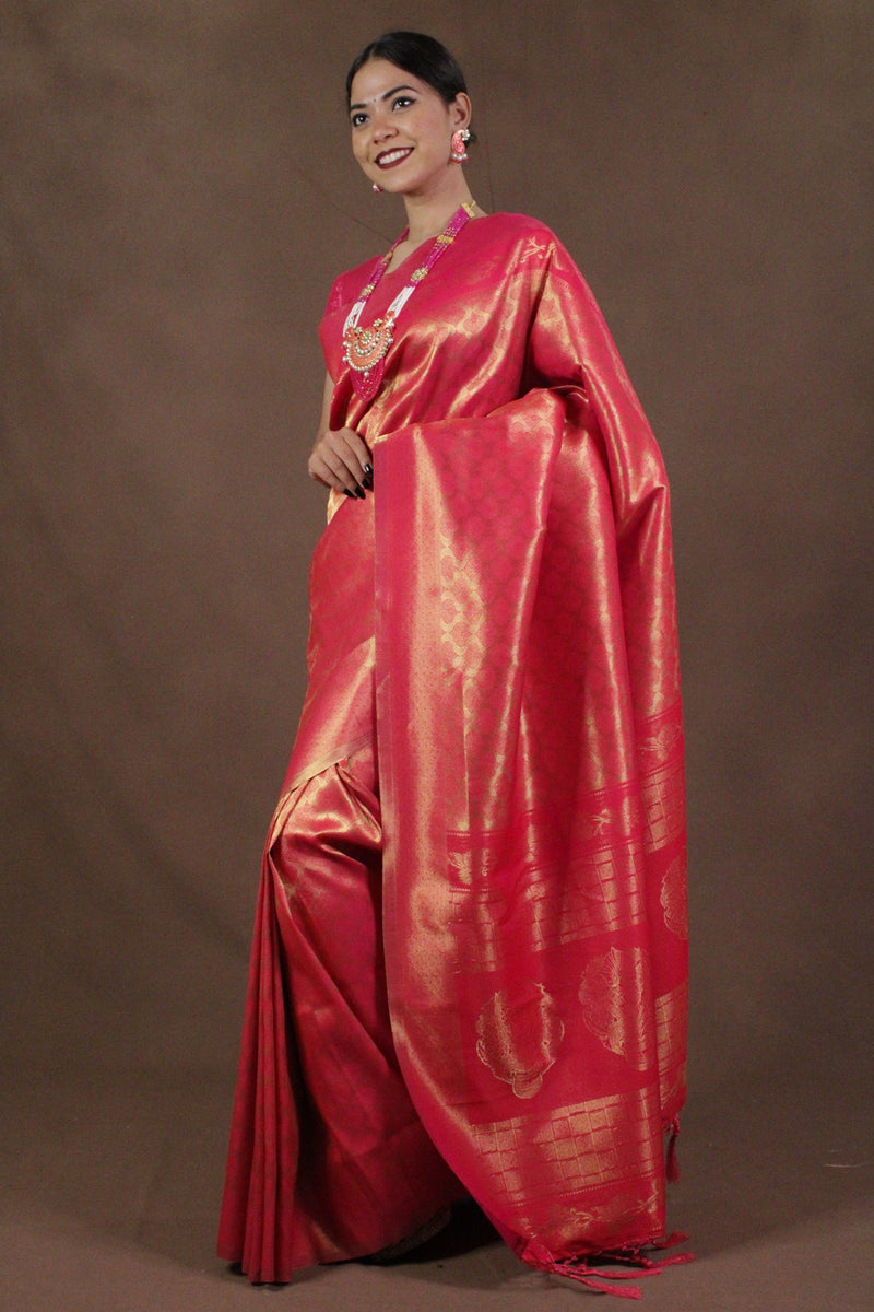 Pink & Gold-Toned Woven Banarasi Wrap in 1 minute saree