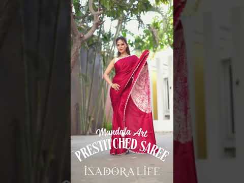 Pre drape Hand Shibori mandala Dye on Red Modal Silk ready to wear saree