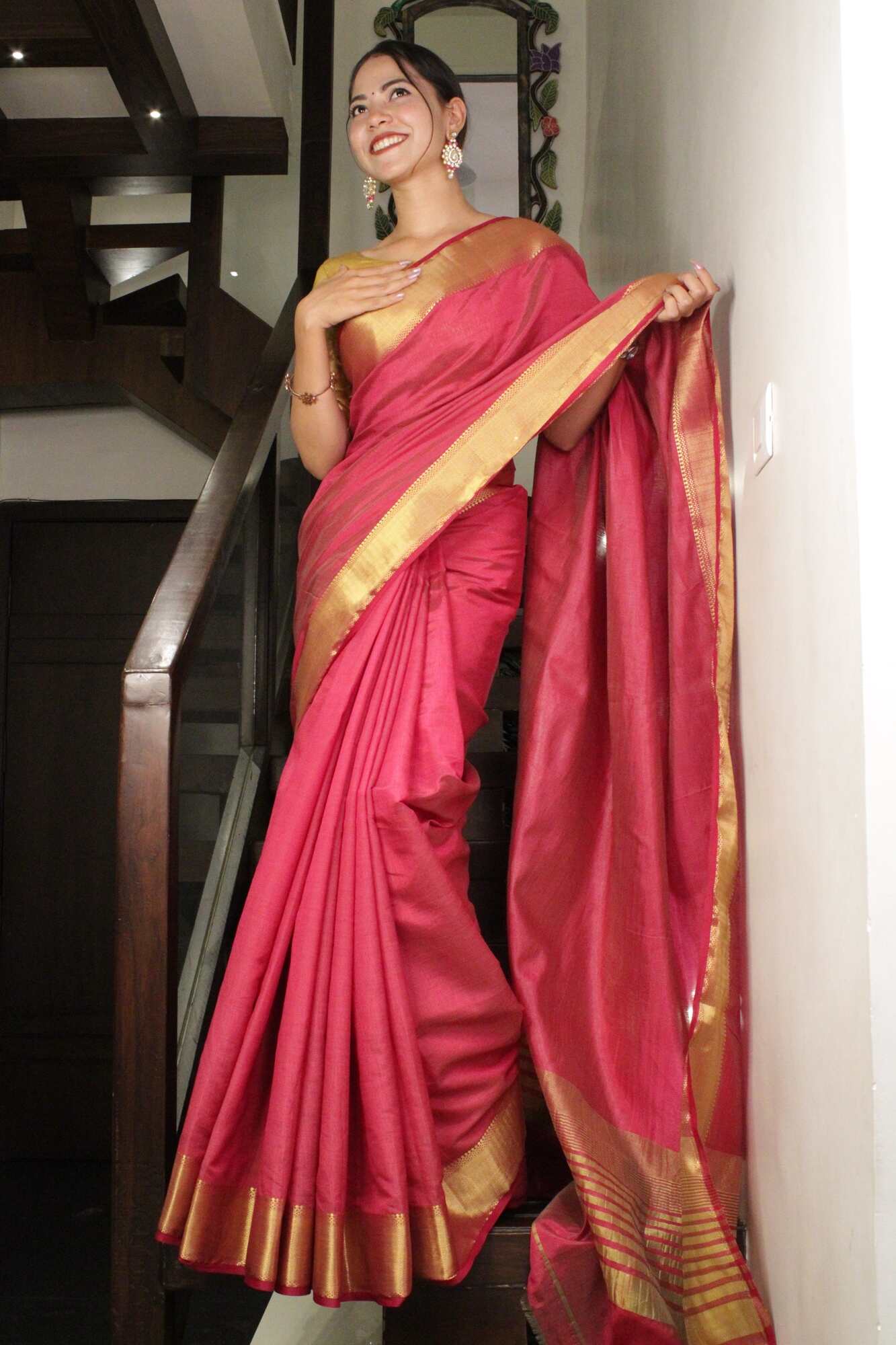 Ravishing Azure Pink With Zari Border Wrap in 1 minute Saree