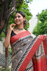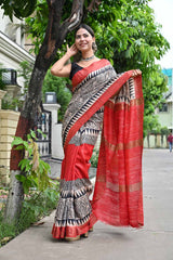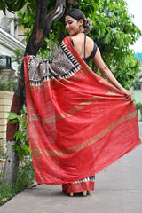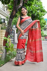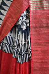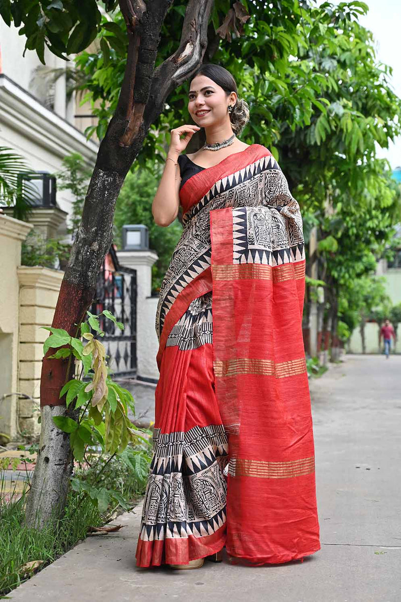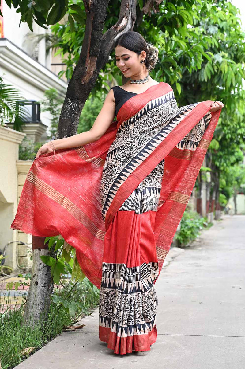 Ready To Wear Beige & Red Tussar Giccha Soft Handloom Silk Wrap in 1 minute saree