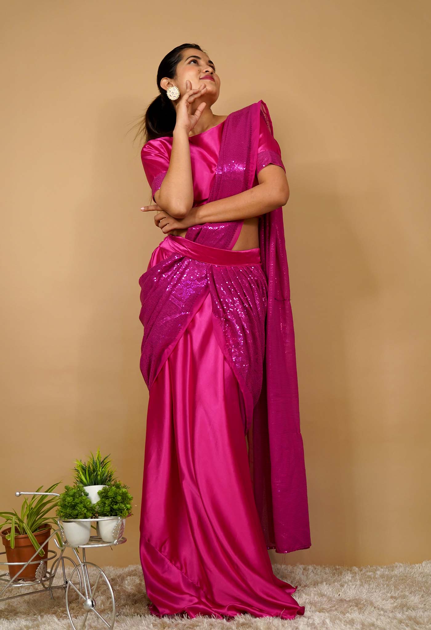 Ready To Wear Cowl Drapped With Belt And skirt patterned Designer Saree