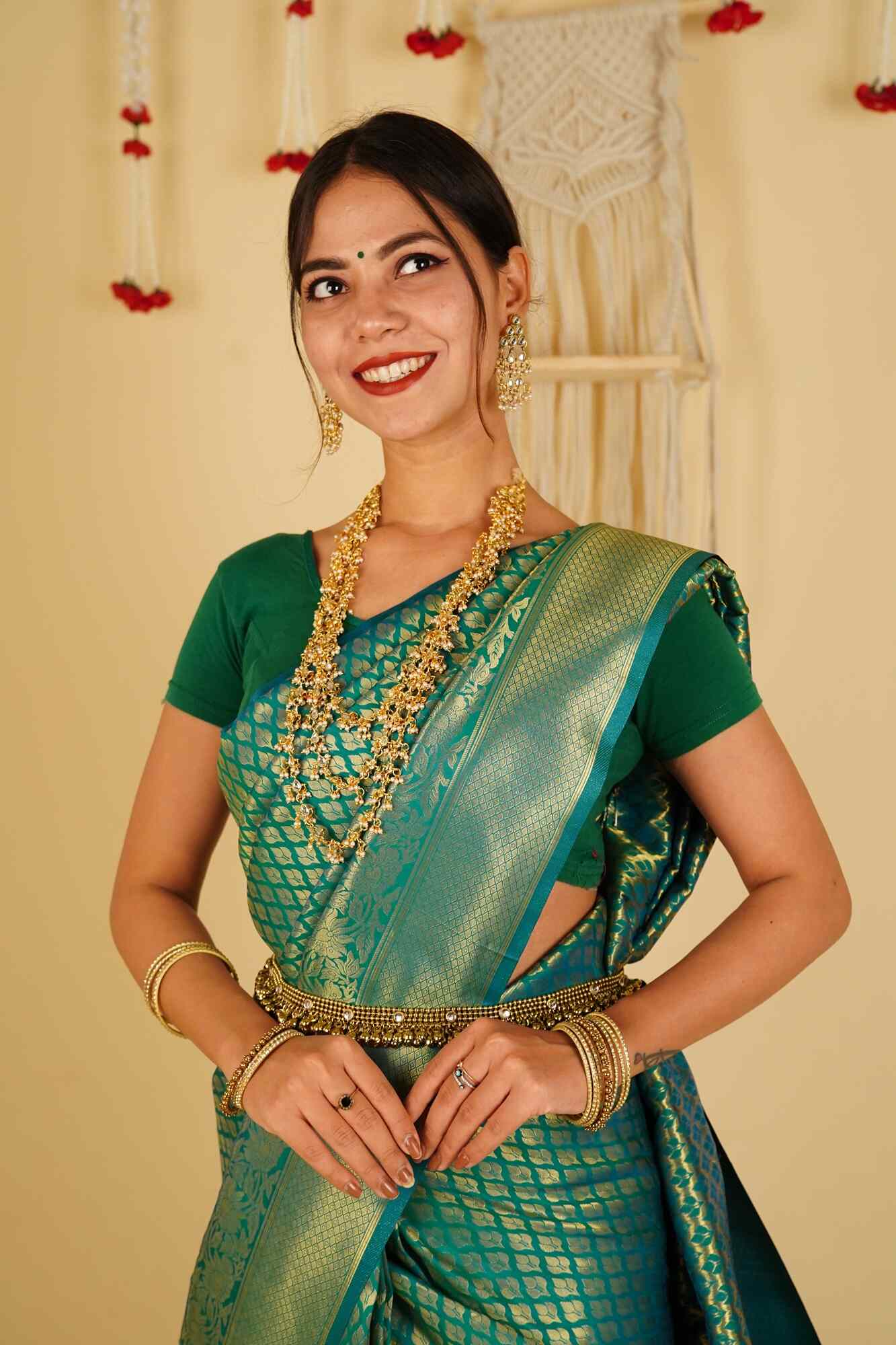Ready To Wear Dhoop Chaanv Zari Woven Kanchipuram Motif Wrap in 1 minute saree