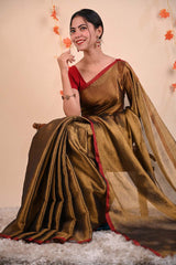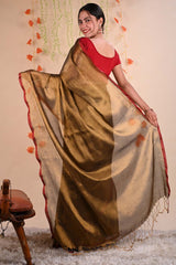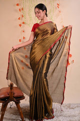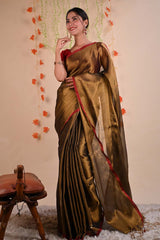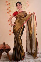 Ready To Wear Premium Organza Tissue With Tassels Dhoop Chaanv On Pallu Wrap in 1 minute saree
