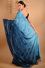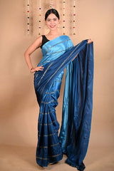 Ready To Wear Premium Soft Satin Silk Blue ombre With Sequin Embellished & Ornate palla Wrap in 1 minute saree