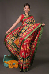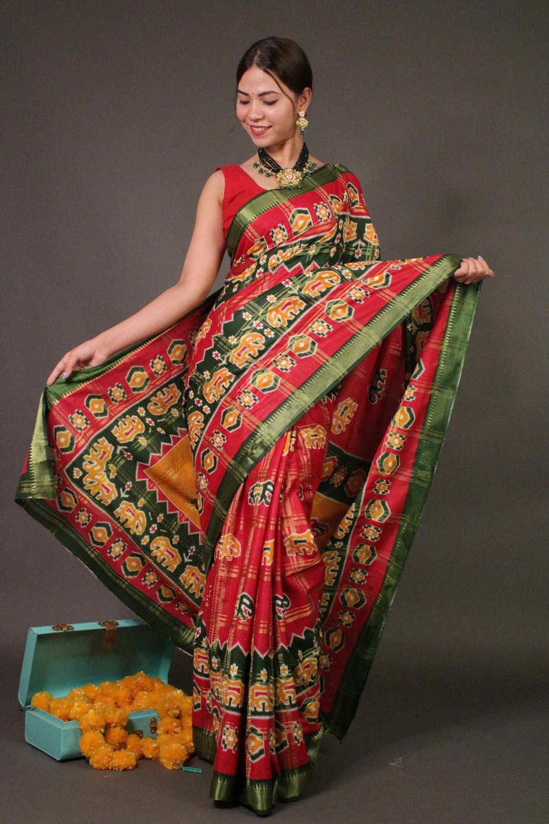 Red Cotton Patola Banarasi pattern festive rich look Wrap in 1 minute saree