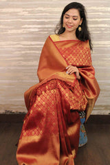 red kanjeevaram woven zari all over wrap in 1 minute saree