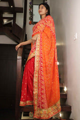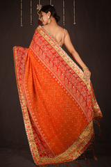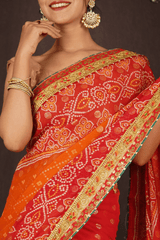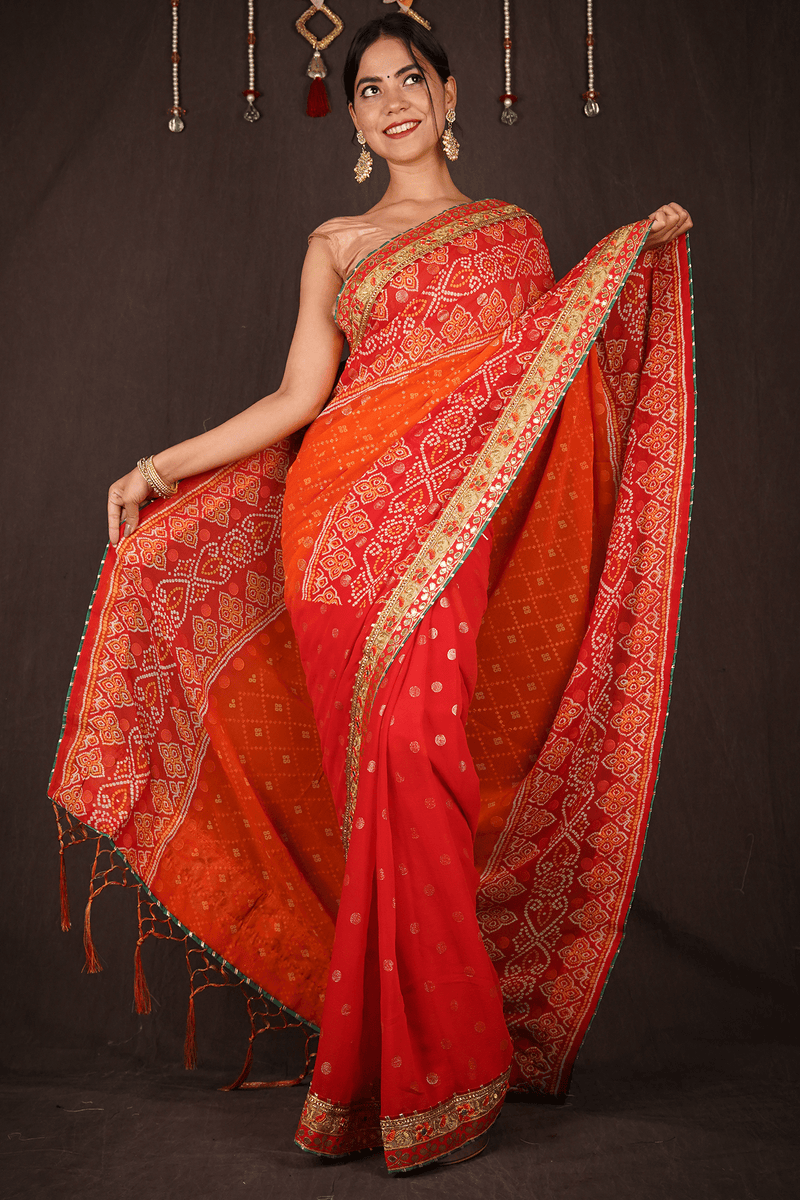RED - ORANGE GEORGETTE CHIFFON BANDHANI SAREE WITH GOTA PATTI BORDER