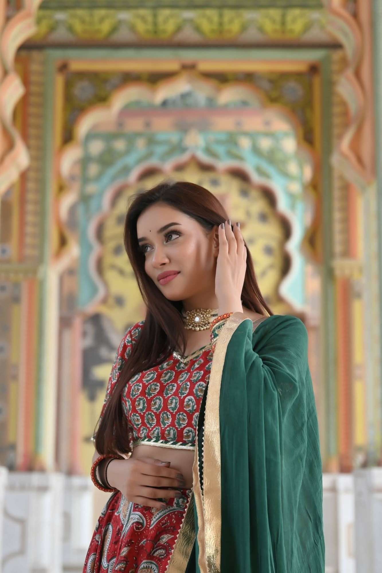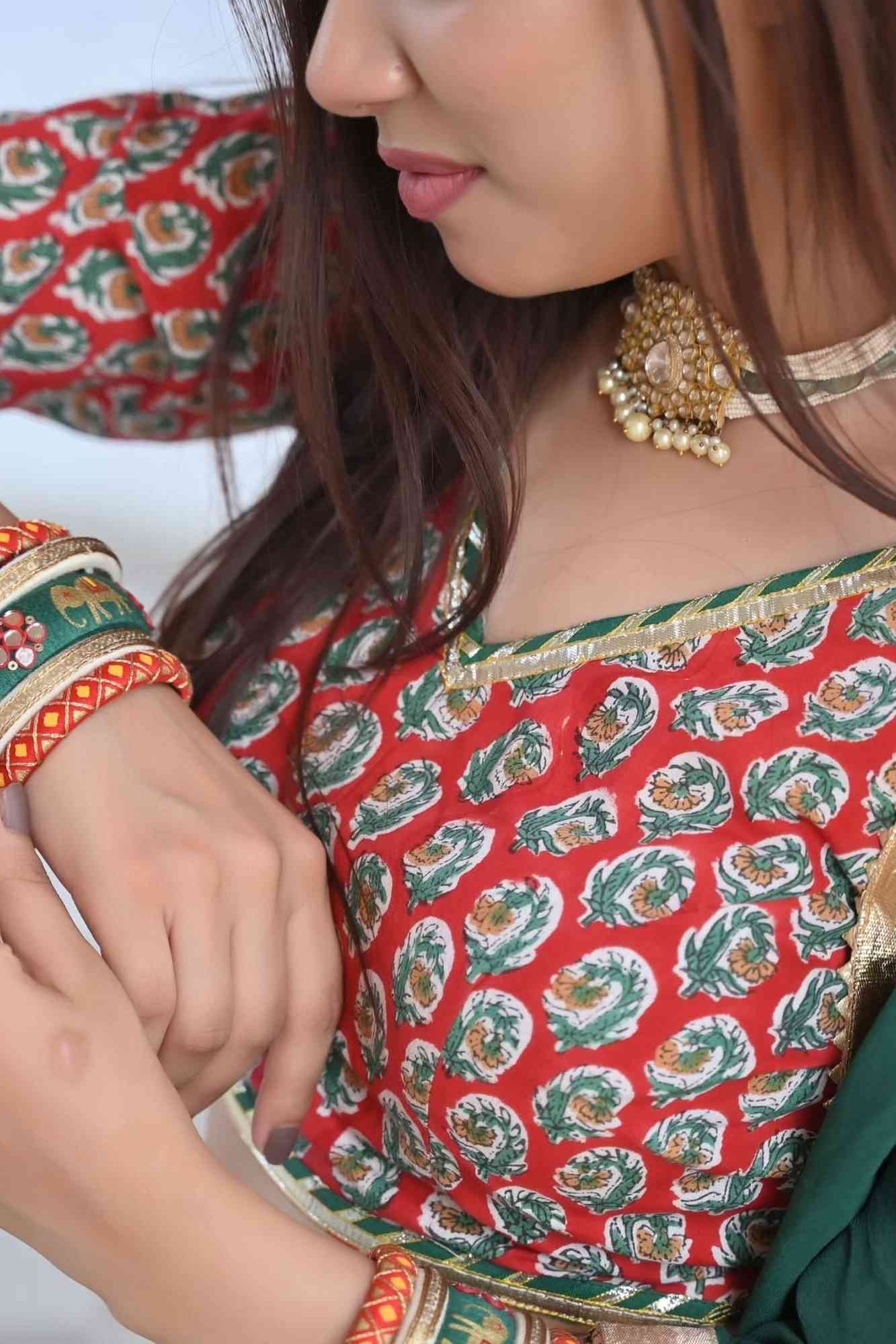Red Paisley Lehenga handcrafted with hand block print cotton | Made To Order