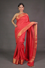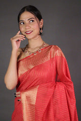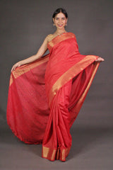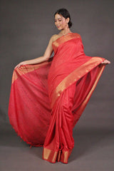 Red Premium Soft Bhagalpuri Cotton Silk with woven zari & sequin work all over Wrap in 1 minute saree