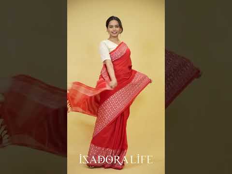 Red Traditional Bengali Cotton With Begampuri Naksha Border & Handloom Wrap In One Minute Saree
