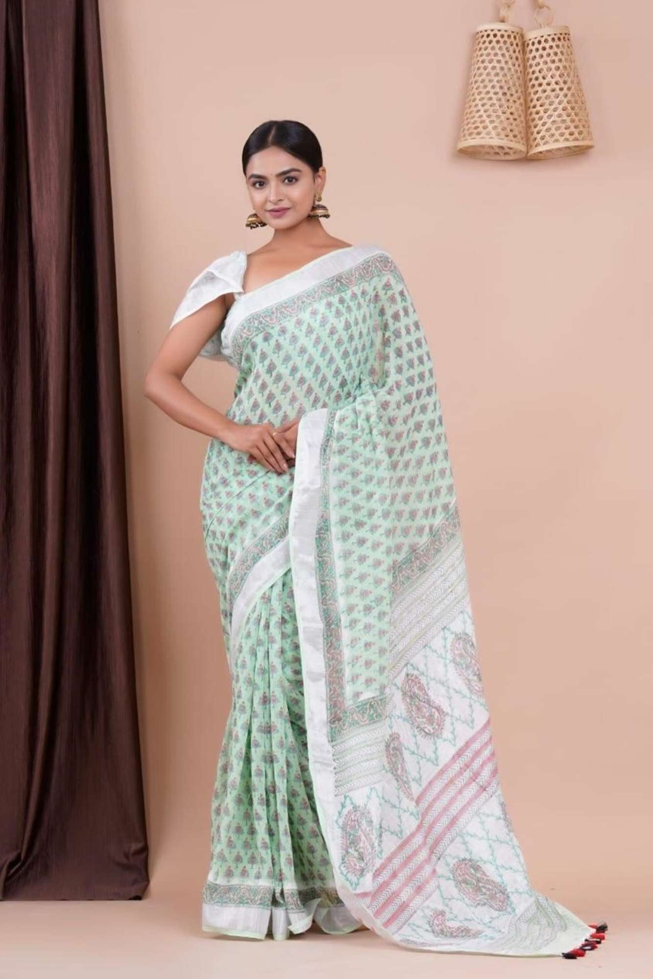 Traditional Hand Block Linen Cotton Ready to Wear Saree